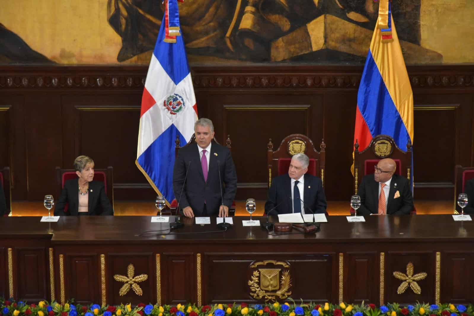 Los mandatarios también intercambiaron condecoraciones: Abinader le entregó la Orden del Mérito de Duarte, Sánchez y Mella, en el Grado de Gran Cruz Placa de Oro. En tanto, la condecoración concedida por el Gobierno de Colombia al mandatario dominicano es la Orden Boyacá, en el Grado de Gran Collar.